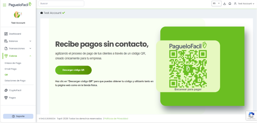En la versión actual de PagueloFacil, existen dos formas de acceder y descargar el código QR: