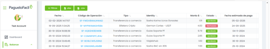 Esta guía en movimientos se ve los cobros, lo pagos, las comisiones y el cambio en el balance. 1. Iniciar sesión Ingresa a tu cuenta de PagueloFacil utilizando tus credenciales. 2. Acceder a la sección movimientos Dentro de la sección Balance, haz ...