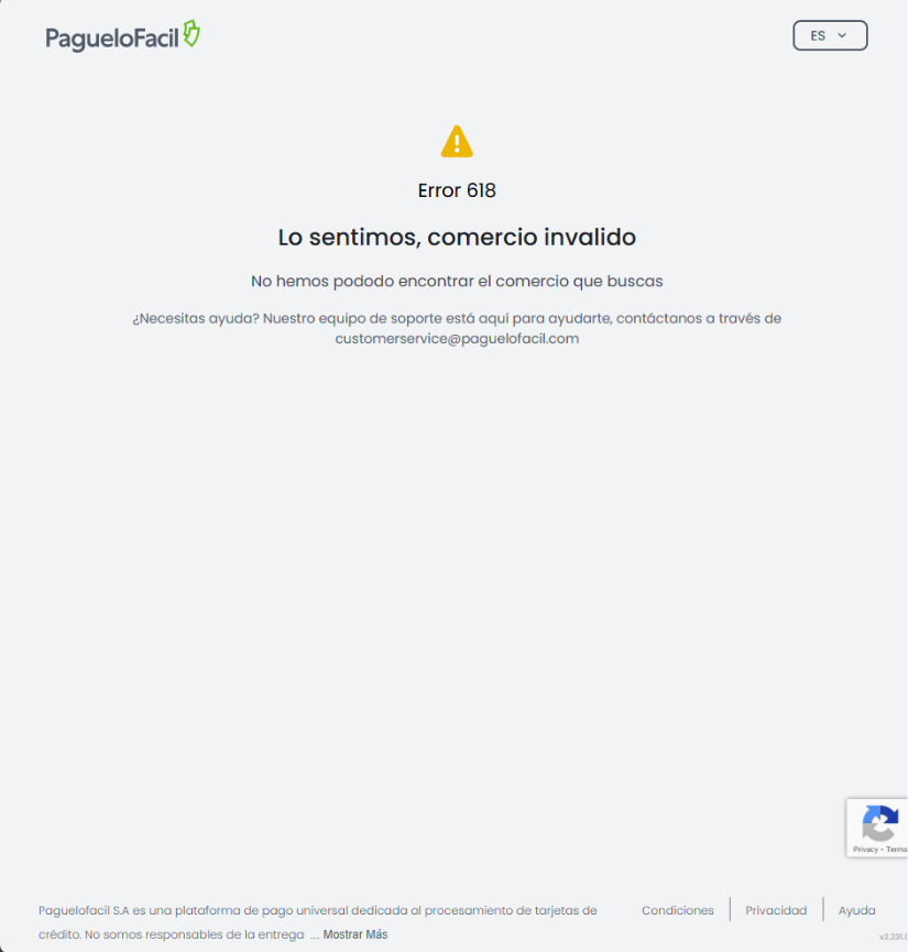 Error 618 – Comercio inválido