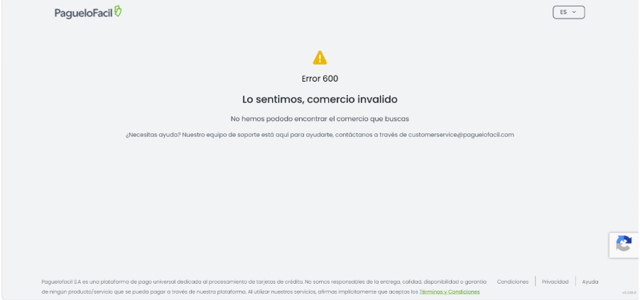Esta guía detalla el error 600, una alerta de nivel técnico y administrativo que se presenta cuando la plataforma de PagueloFacil no logra reconocer la identidad del comercio que intenta procesar la transacción.