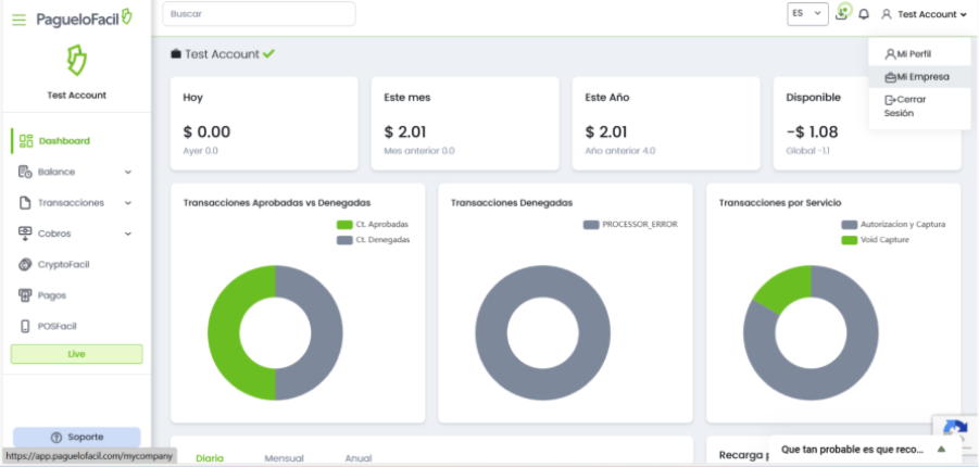 En la esquina superior derecha de la pantalla, selecciona Mi Empresa.