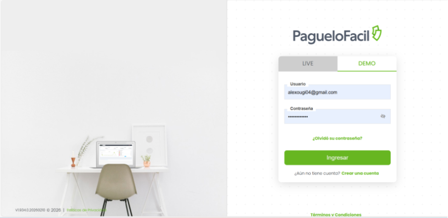 Ingresa a tu cuenta de PagueloFacil utilizando el enlace correspondiente al ambiente que deseas usar: