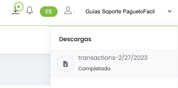5. Haz click en el botón de descarga con la notificación pendiente (la flecha hacia abajo con el punto verde parpadeando) y toca el archivo de transacciones para descargarlo.