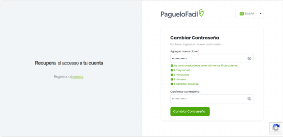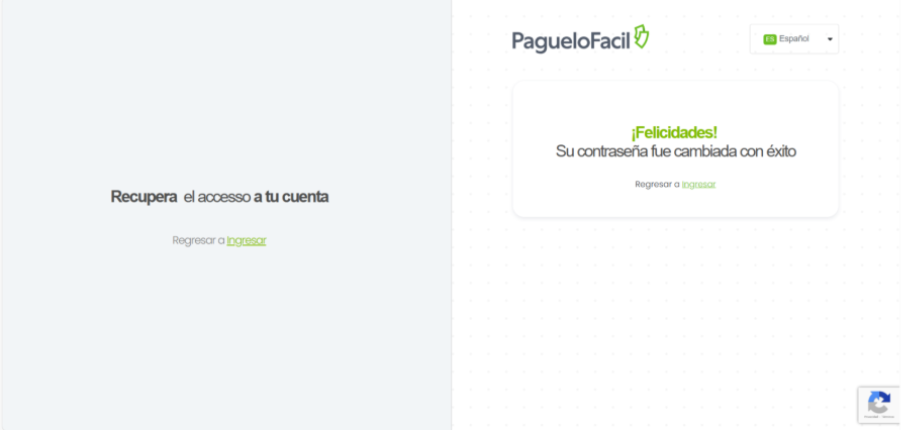 Listo. Tu contraseña ha sido recuperada correctamente.