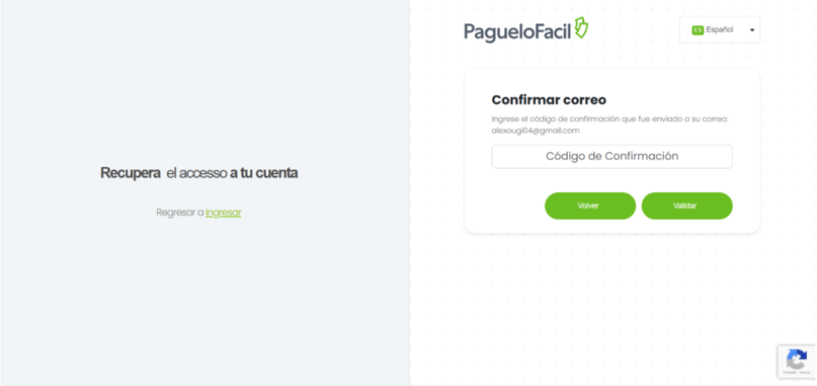4. Validar el código de recuperación